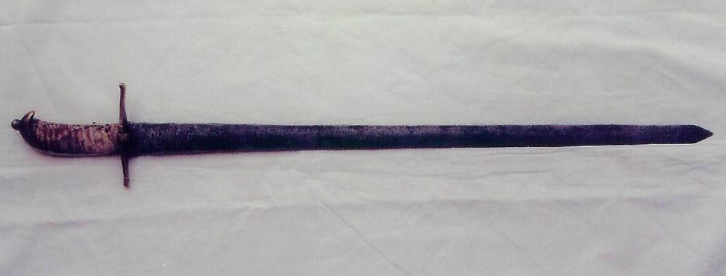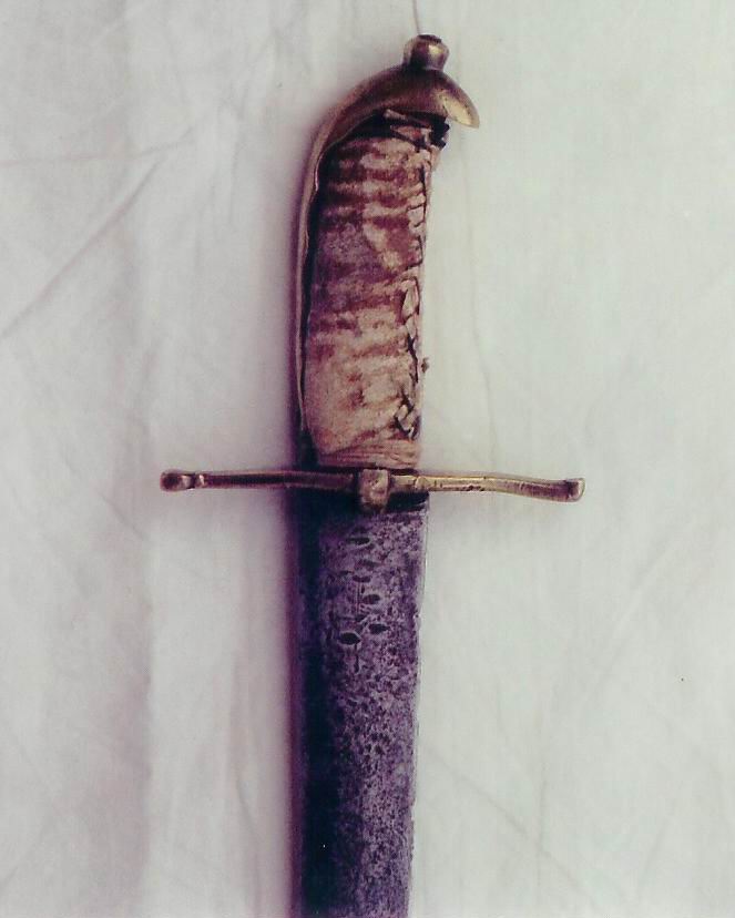 Klinge nicht mehr zu sehen. Der Griff war ursprünglich mit Leder überzogen und dieses