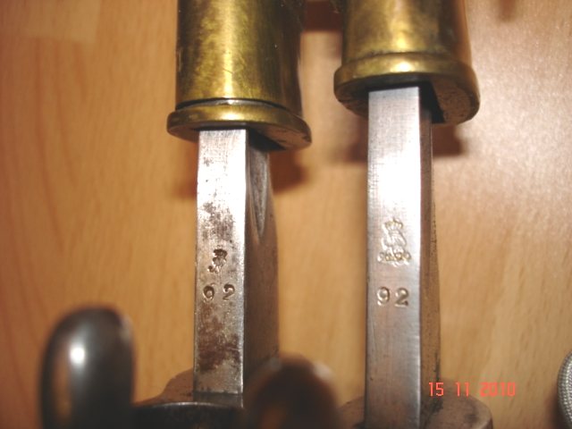 Es gibt auch andere sächsische Blankwaffen mit kleiner und großer AR 91 Abnahme.Vermutlich war 1891/92 der Übergang von der kleinen zur großen AR-Abnahme,aber dies ist nicht belegbar.Die mir bekannten AR 93 und 94 Abnahmen auf sächsischen Infanterie=Seitengewehren M/71 waren groß.