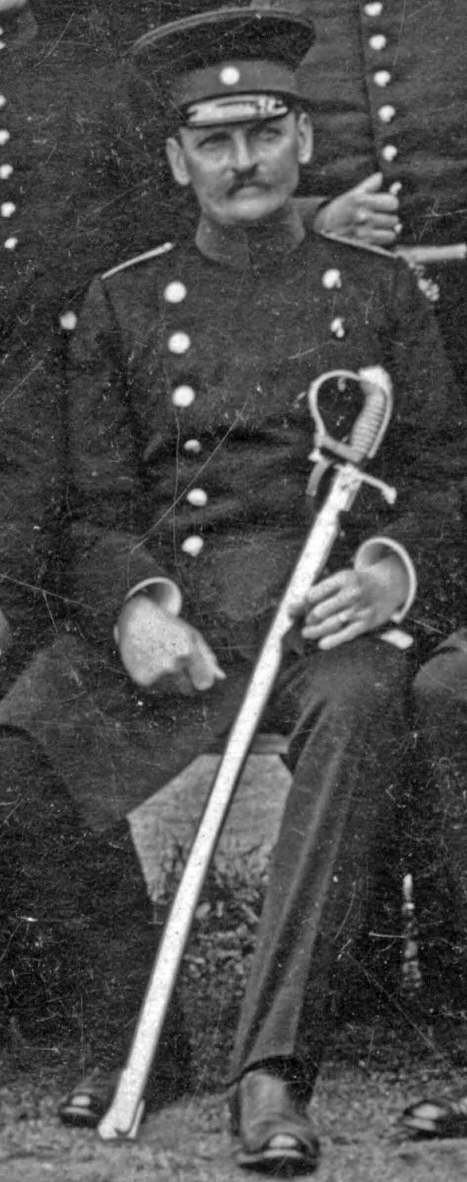 In der Detailvergrößerung kann man dann den sächsischen Artillerie-Offizier-Säbel erkennen.