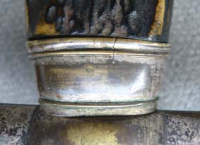 Ich habe leider keine Erfahrungen mit solchen Blankwaffen. Was mir auffällt, ist die farblich abweichende Griffzwinge, ebenso der geschwärzte Geweihgriff. Ob das stilgemäß zum Rest passt, und somit auch ursprünglich ist, weiß ich nicht.