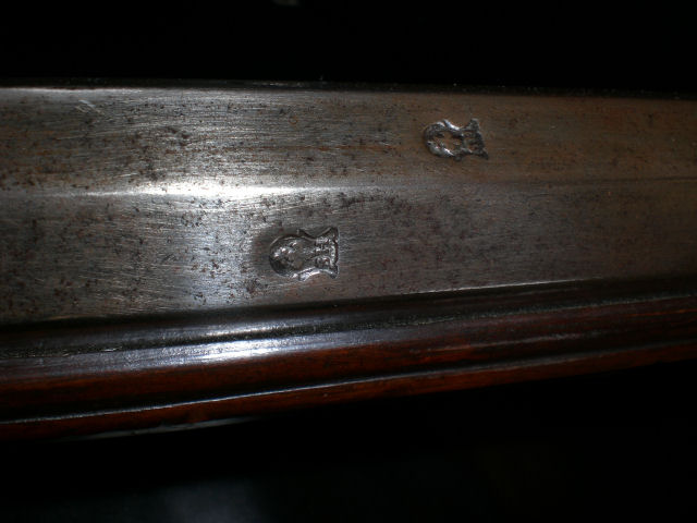 Leider kann ich die drei Laufstempel nicht eindeutig erkennen, auch nicht in der Vergrößerung, aber alleine die Art ihrer Anbringung auf dem Lauf in der Form eines Dreicks läßt mich vermuten, dass der Büchsenmacher einen aus Spanien stammenden Lauf verarbeitet hat. Das aber ist nur eine Vermutung.