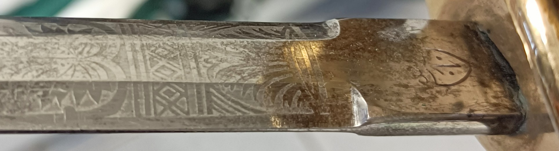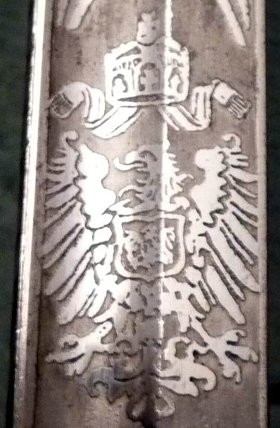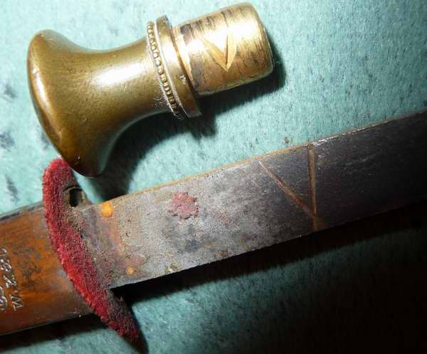 aber allein auf der Innenseite des Stichblattes, auf der Angel und auf der Schraube (Mutter) findet sich ein V förmiges Zeichen.