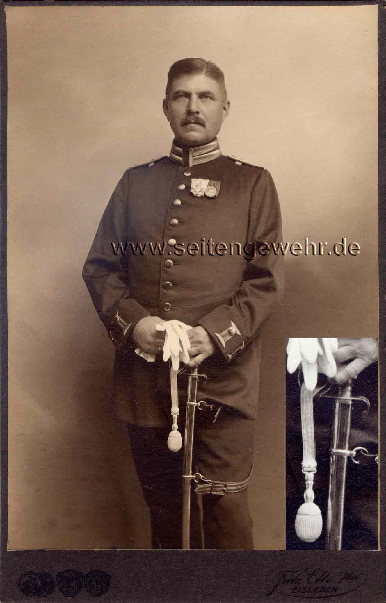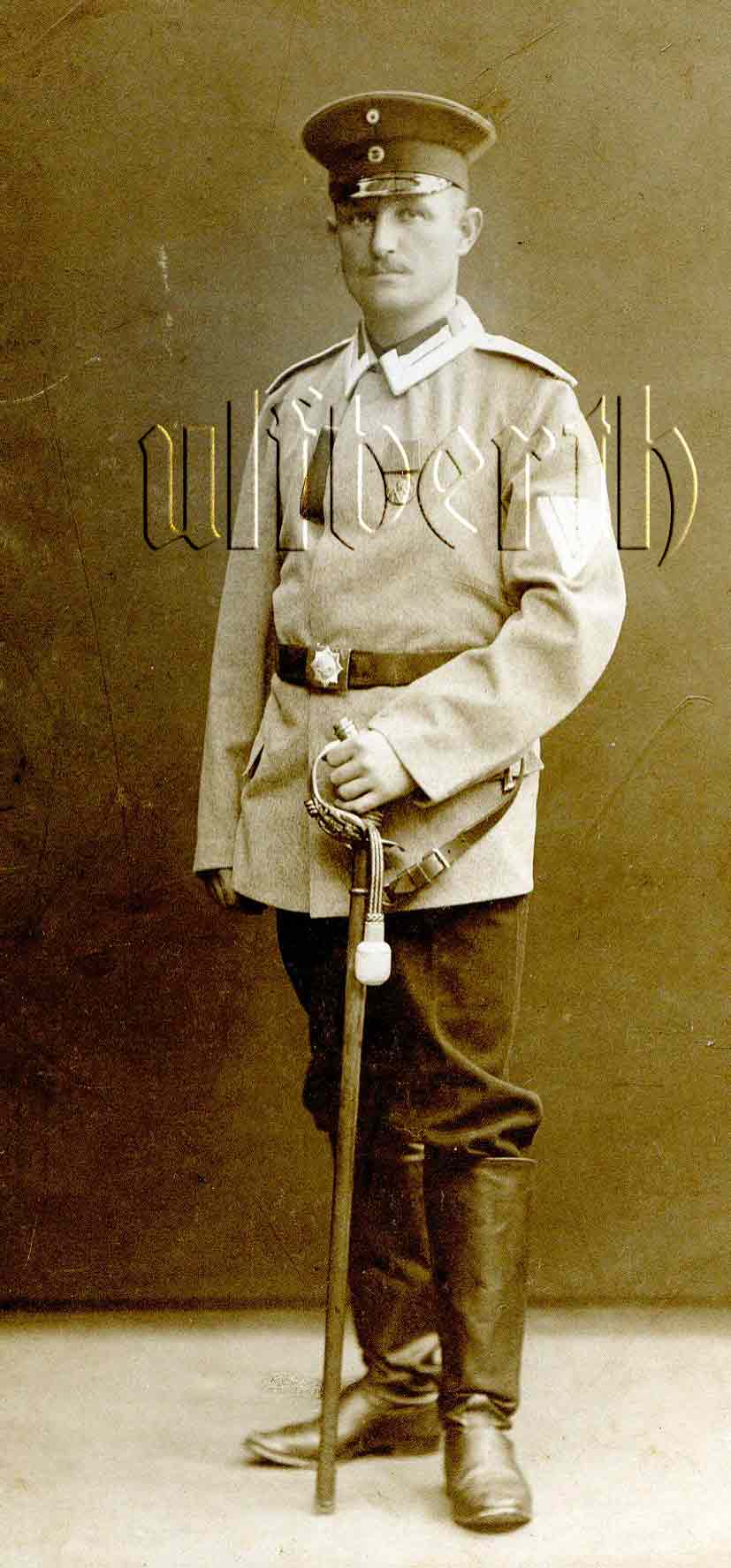Hier ein "Gegenstück" zum eingangs gezeigten Bild. Ein preußischer Feldwebel mit bayerischem Infanterie-Offizier-Säbel (I.O.S.) und preußischem Portepee.