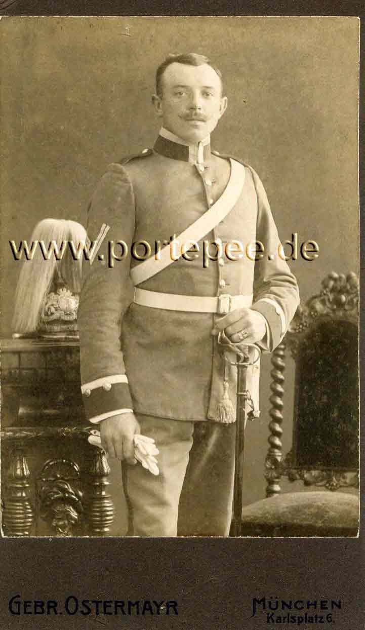 Kleiner Schlenker zu den Unteroffizieren ohne Portepee. Ein Unteroffizier aus dem bayerischen 1. Schweren Reiter-Regiment mit privatem Pallasch und Unteroffizier-Faustriemen. Die Form des Faustriemens ähnelt der alten "Ehrensäbelquaste" der Kapitulanten.