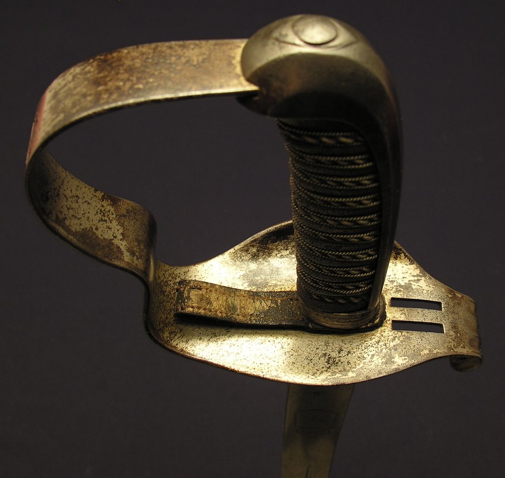 Ob die Scheide original zum Säbel gehört, vermag ich aus den Fotos nicht zu ersehen. So erscheint sie mir auf den Bildern im Verhältnis zur Klingenlänge etwas zu lang. Zumindest bei den Waffen der Offizieren wurden auch die buckelförmigen Scheidenbänder verwandt.