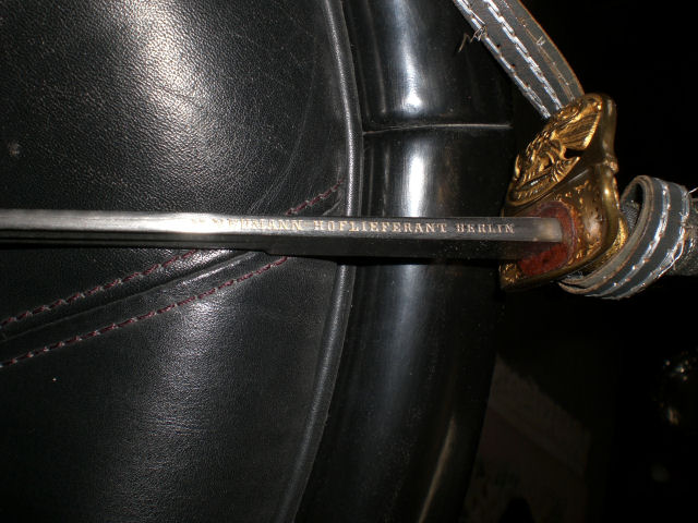 Zu der geschwärzten Scheide mit 2 Bändern und Ringen würde normalerweise ein preußisches Portepee mit 3 Durchzügen am Band gehören.