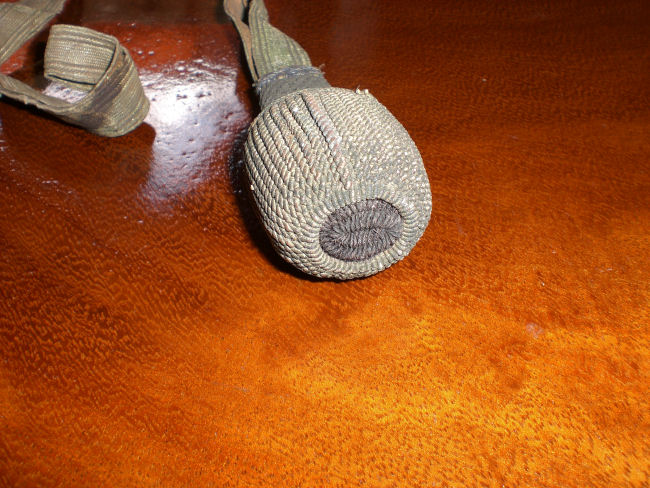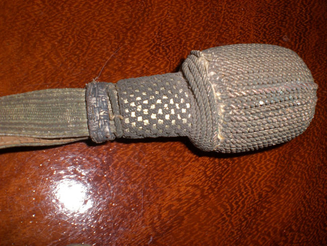 Hallo Forum u.Fachleute in Fragen"Portepee".Dieses Portepee,war an einen bereits von mir eingestellten Säbel,event.Baden?!anhängig.Unsachgem.verknotet,schwer zu lösen.Ich habe es etwas gereinigt,damit die Strukturen wieder Sichtbar wurden.Gesamtl. ca.46 x 1.5cm.Vielleicht hat jemand eine Erklärung dazu.Gruß,Snjar