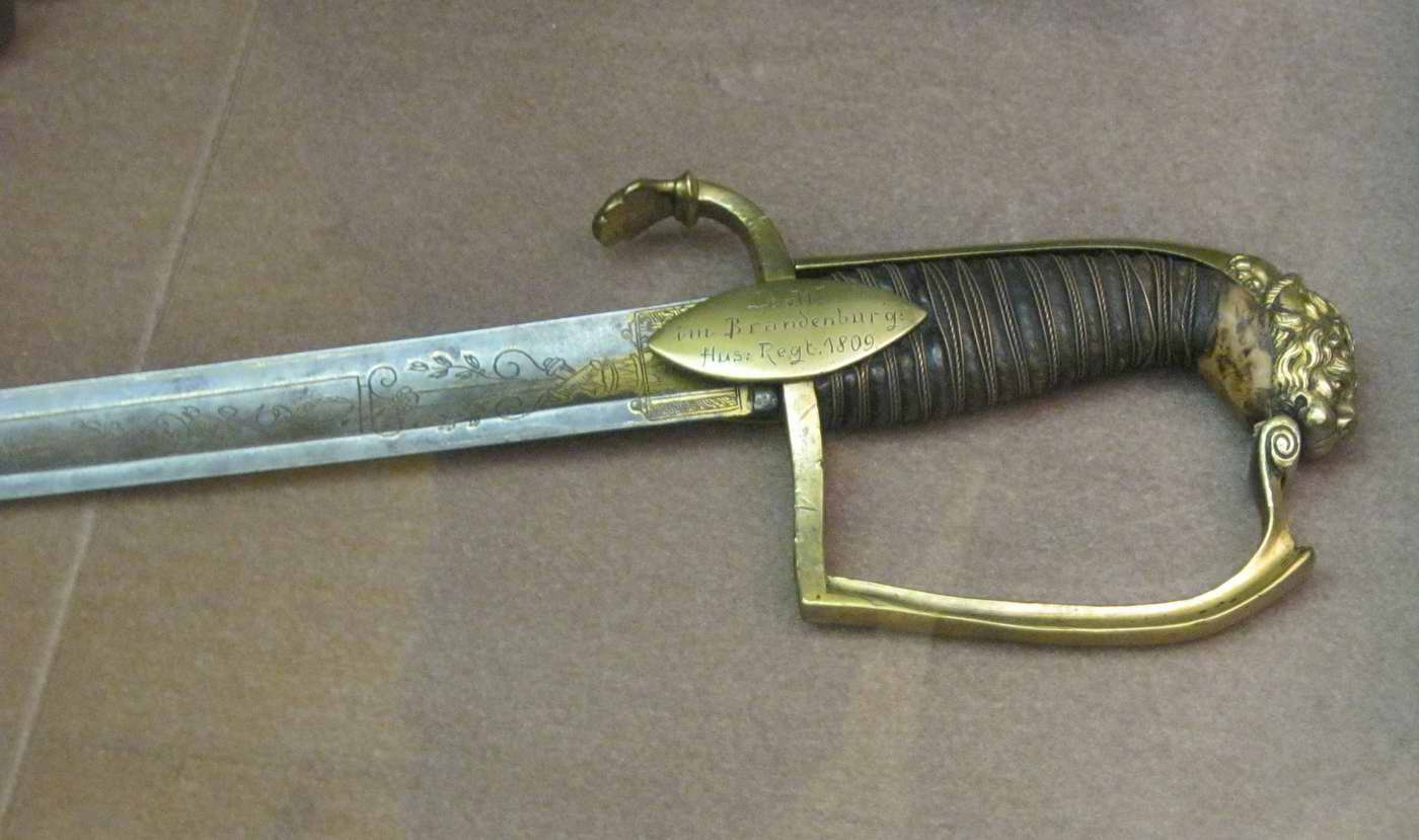 Wobei sich zwangsläufig die Frage stellt, ob die Inschrift wirklich von 1809 ist! Die Gravur "Lt. v. W. / im Brandenb. Hus. Rgt. 1809" dürfte m. E. erst nach den diesem Ereignis (postum?) vorgenommen worden zu sein.