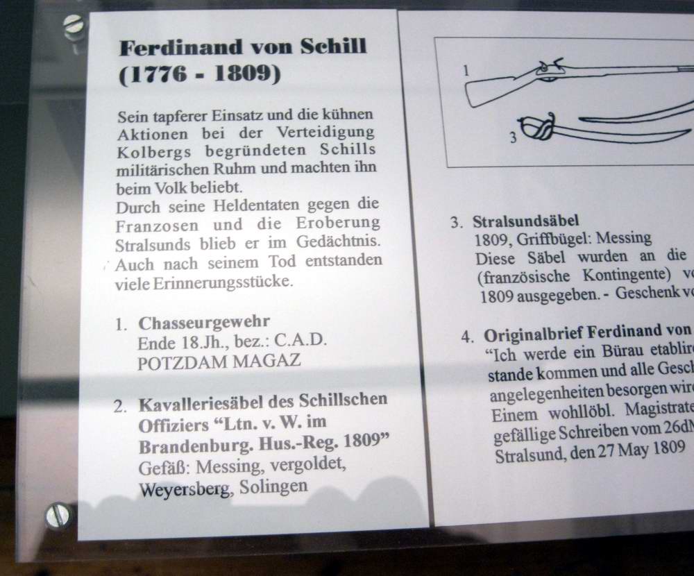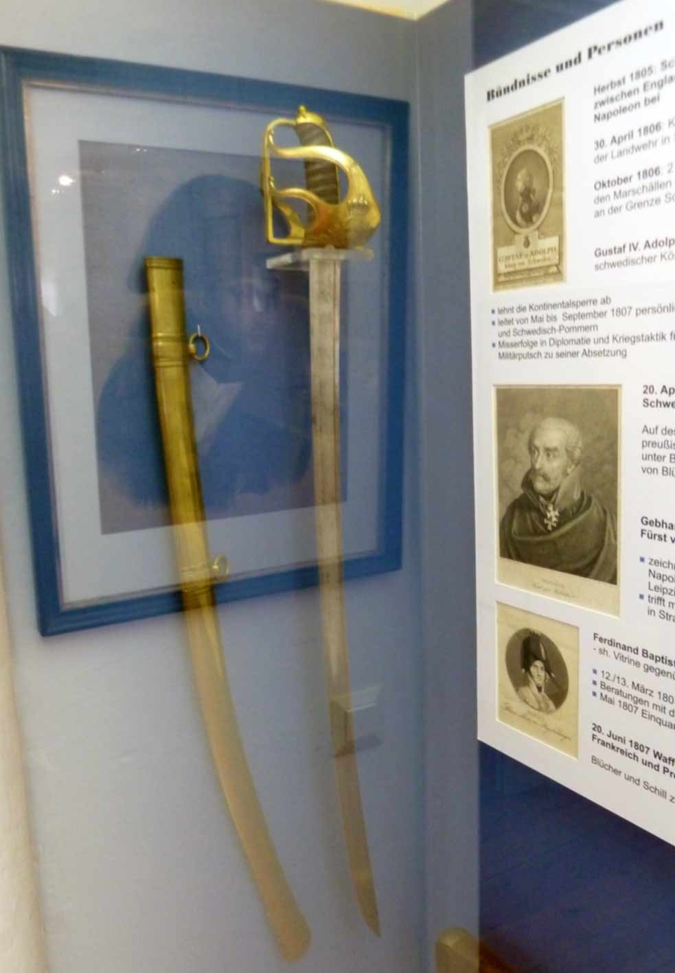anschließend an Dänholm habe ich noch das kulthist. Museum besucht. Dort kann man einige interessante Exponate sehen. Stralsundsäbel u. Säbel eines Schill'schen Offz., der eine Augenweite ist. Die Ausschilderung des preuß. Gewehrs ist natürlich ein Lacher.