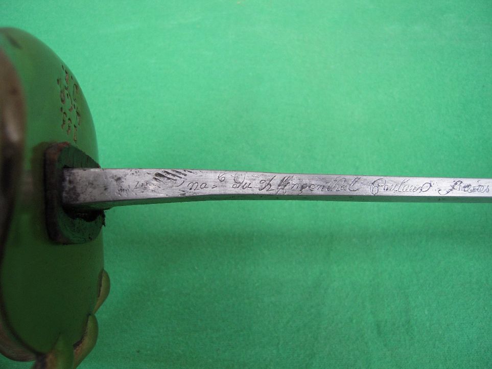 bezüglich dieses Degens und der Stempelung würde ich mir eigentlich keine Sorgen machen. Schau Dir das berühmte Bild von Franz Krüger "Einkleidung bei den 4. Kürassieren" von 1835 an, dort siehst Du, daß zu diesem Zeitpunkt dort der Degen fr./Form getragen wurde (das Bild ist in mehreren Büchern veröffentlicht). Bei einer der Personen ist mit Kreide auf dessen (noch zivilen) Hut sogar geschrieben "4. C. R.". Die Verwendung von dem "C" statt "K" für die Kürassiere ist bis etwa 1860 vielfach nachweisbar. Die Stempelung des vorgestellten Degens würde ich so um 1830 ansetzen. Mich würde interessieren, ob die Klingenpitze noch in der Rückenlinie befindlich ist.