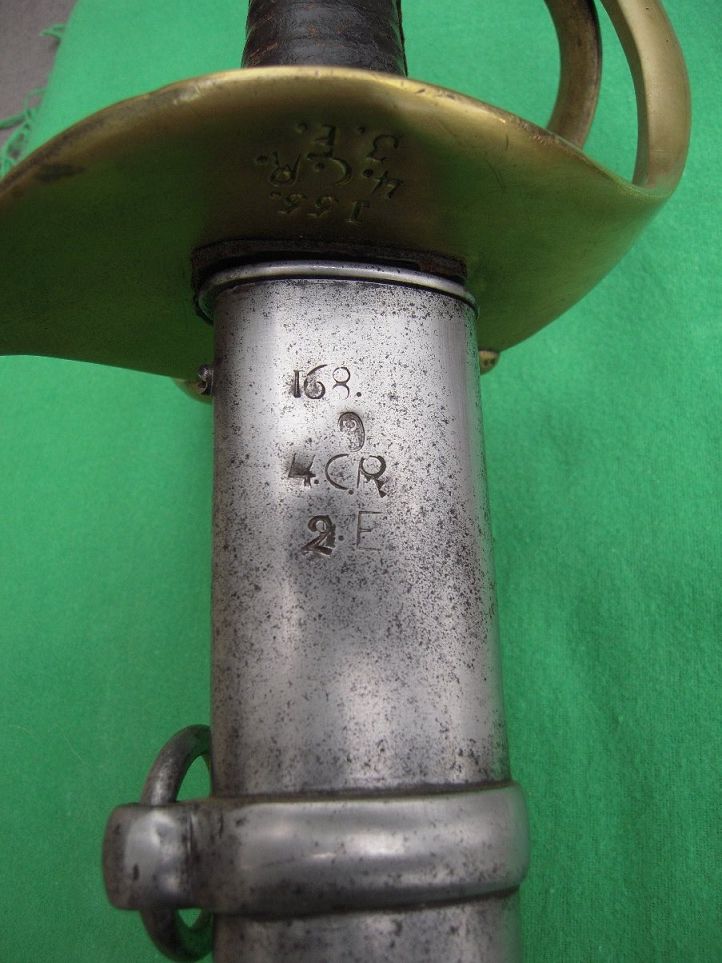 bezüglich dieses Degens und der Stempelung würde ich mir eigentlich keine Sorgen machen. Schau Dir das berühmte Bild von Franz Krüger "Einkleidung bei den 4. Kürassieren" von 1835 an, dort siehst Du, daß zu diesem Zeitpunkt dort der Degen fr./Form getragen wurde (das Bild ist in mehreren Büchern veröffentlicht). Bei einer der Personen ist mit Kreide auf dessen (noch zivilen) Hut sogar geschrieben "4. C. R.". Die Verwendung von dem "C" statt "K" für die Kürassiere ist bis etwa 1860 vielfach nachweisbar. Die Stempelung des vorgestellten Degens würde ich so um 1830 ansetzen. Mich würde interessieren, ob die Klingenpitze noch in der Rückenlinie befindlich ist.
