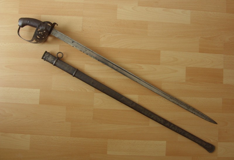 Bestempelung: 5. Chevaulegerregiment. Korb, Mundstück und Scheide sind übereinstimmend mit "4.38." gestempelt.