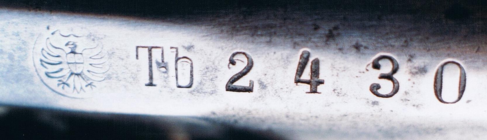 der Stempelung : R (kursiv)10.S. und einer Waffennummer.