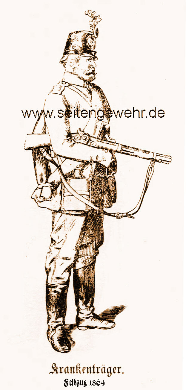Mit der Errichtung von insgesamt acht Train-Bataillonen im Jahre 1853 hatte der preußische Train zum erstenmal eine militärische Organisationsform erhalten. Während die berittenen Trainsoldaten einen Säbel besaßen, erhielten die Trainsoldaten zu Fuß einen umgeänderten Karabiner M 1823UM. 1854 bestimmte dann eine Kabinettsordre vom 21. Dezember, dass im Kriegsfall bei jedem Armeekorps aus vorher zu bestimmenden Infanteriemannschaften des Beurlaubtenstandes eine Krankenträger-Kompanie zu 45 Tragbahren zu formieren sei.