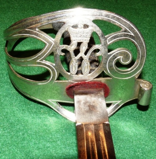 Es handelt sich um den eher seltenen Degen wie ihn die Offiziere im I. bzw. II. Bataillon des Braunschweigischen Infanterie-Regiment Nr.92 trugen. Das überkrönte W im Gefäß ist die Chiffre für Herzog Wilhelm. Der Degen wurde von WKC in Solingen hergestellt und entspricht dem Stück, das im WKC Katalog unter der Nummer 280 dargestellt ist bis auf die Tatsache, dass die Scheide nur ein Ringband hat. Daher ordne ich den Degen in die Zeit nach 1910.