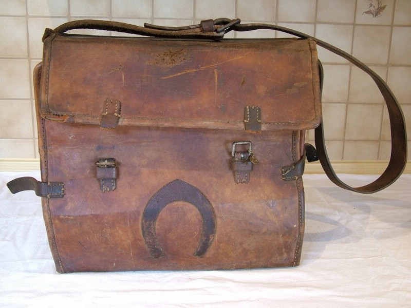Und hier noch ein wenig offene Werbung. Vor kurzem hatte ich einige Lederteile bei der "Ledermanufaktur-Zimmermann". Dort wird ausgesprochen gute Arbeit geleistet und sich mit jedem Problem individuell auseinandergesetzt. Wer in Kassel war kennt diese Ledermanufaktur. Auch im DWJ war schon ein Artikel geschrieben. Dort geht demnächst auch diese Tasche hin, da einige Riemen abgerissen sind. In den Seiten ist Holz eingenäht. Dort war mal der Holzwurm drin. Damit er auch nie wieder kommt, muss dass in der Ledermanufaktur Zimmermann überprüft werden. Nehmt mir diese Werbung nicht übel, aber wer sich so mit den Sammler Belangen auseinandersetzt, muss auch mal deutlich erwähnt werden.
