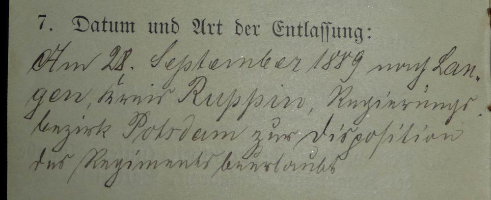 Eintragungen von 1887 (Diensteintritt), bis mindestens 1897, 8 Jahre nach seinem Dienstzeitende.