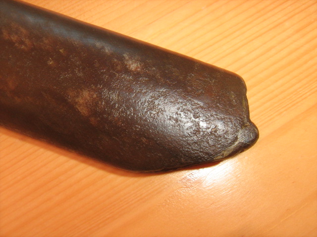Auf Grund der Scheidengestaltung denke ich, dass es sich eher um ein frühes Stück handelt. Erst negative Erfahrung mit der Verletzlichkeit des Scheidenkorpus an den ungeschützen Kanten dürfte dazu geführt haben, dass man die Kanten besser geschützt hat.