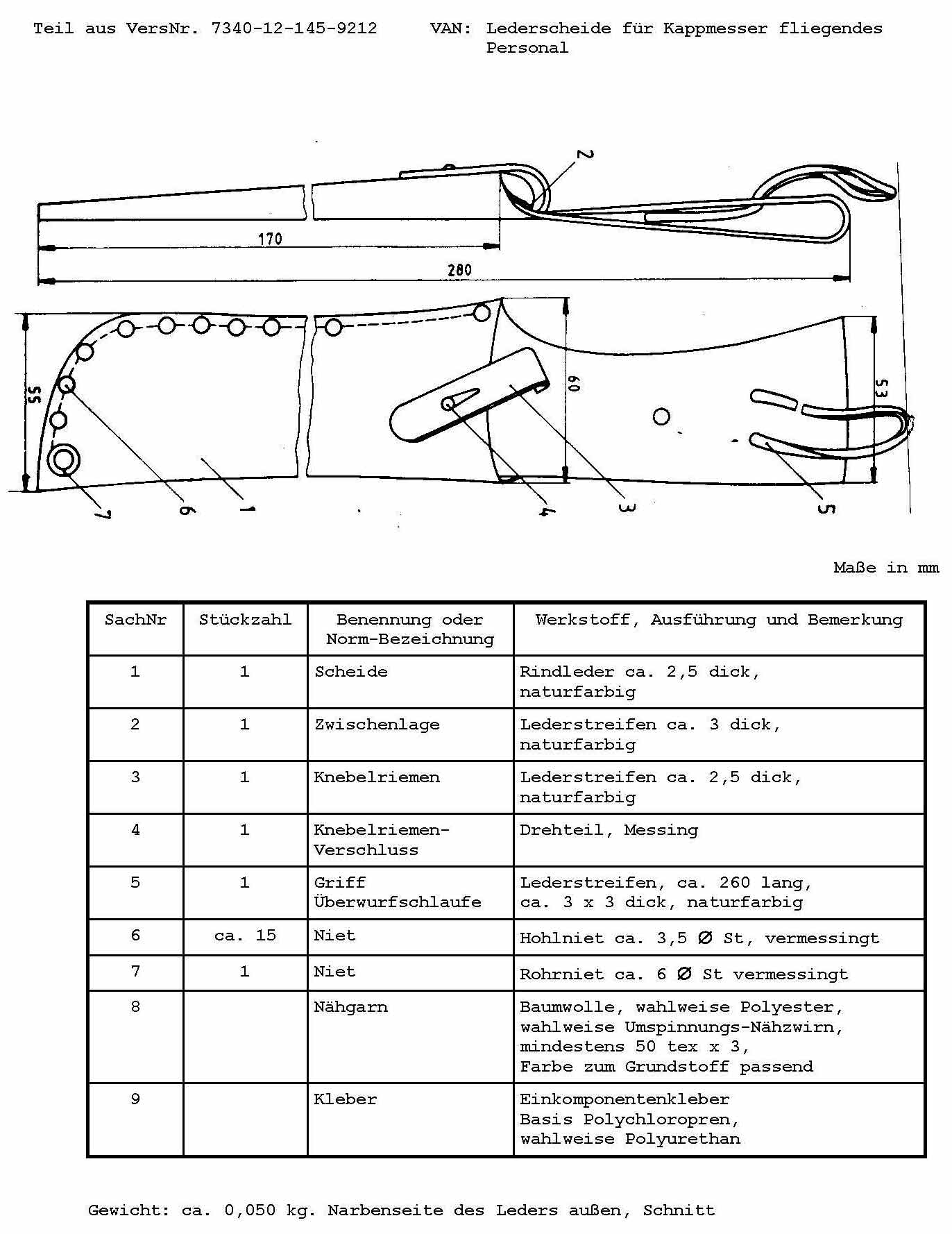 Das „Kappmesser, fliegendes Personal mit Lederscheide“ wurde ab 1967