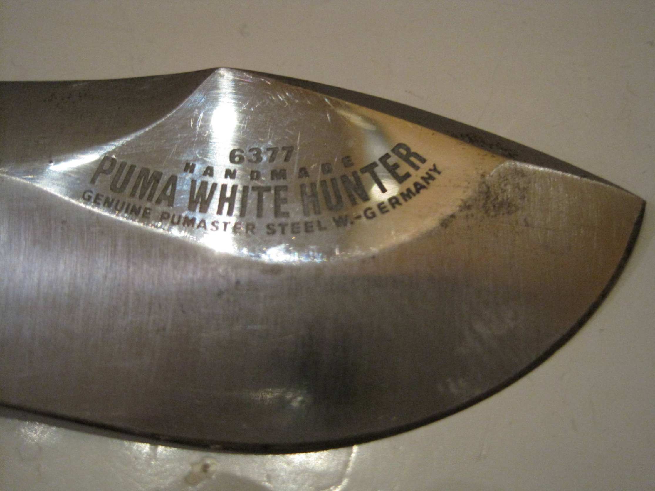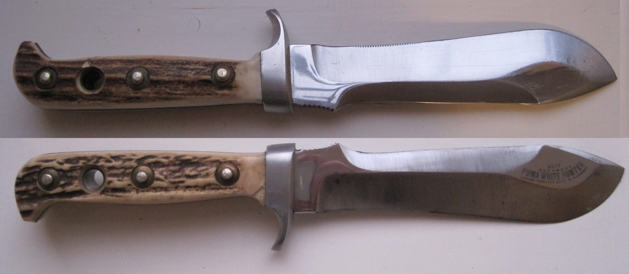 Auf dem Rücken befindet sich eine ballig gehaltene Beilschneide zum schlagenden Gebrauch. Der White Hunter erlebte einen weltweiten Siegeszug und das Design wurde nach der Ablauffrist des PUMA-Patentes von fast jeder messerproduzierenden Nation kopiert."