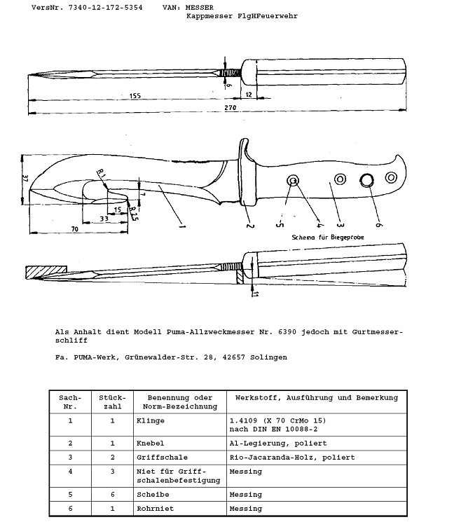 Auch die Flughafen Feuerwehren des Bundes gehörten zu den Käufern dieses Messers.