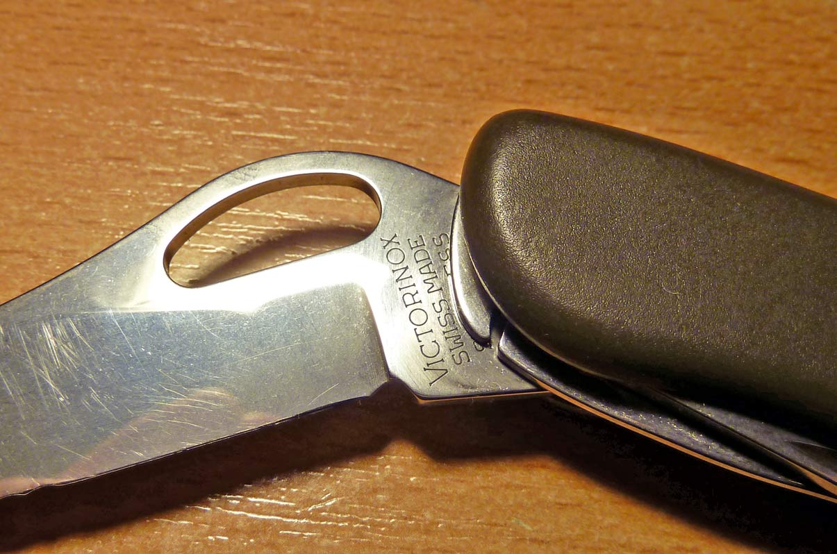 hier der Hersteller Victorinox mit der Stempelung "VICTORINOX SWITZERLAND STAINLESS" auf der Klinge.