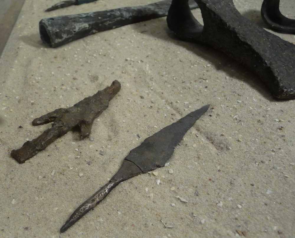 ...finden sich in einem zugänglichen Bunker, neben Fotostrecken, auch eine kleine Vitrine mit alten Jagd- und Gebrauchswaffen, wie Äxte, Messer, Speer- und Harpunenspitzen.