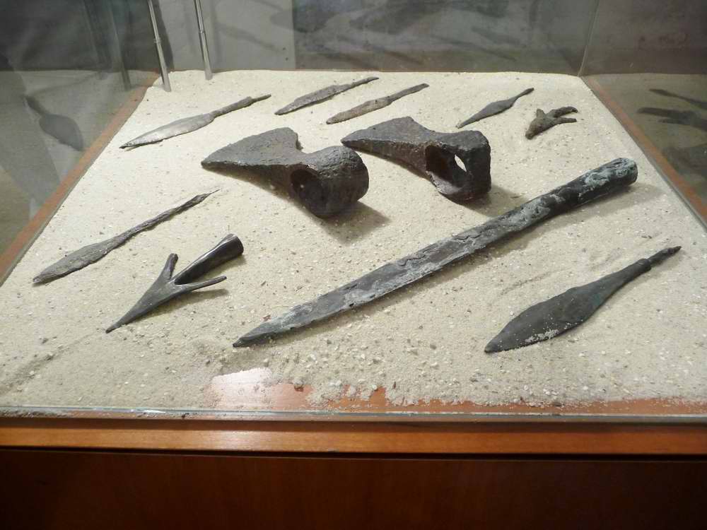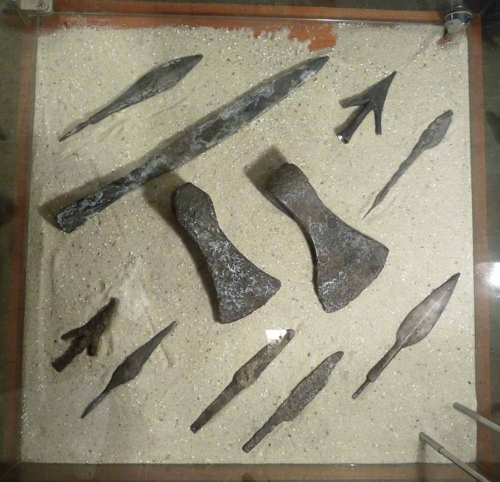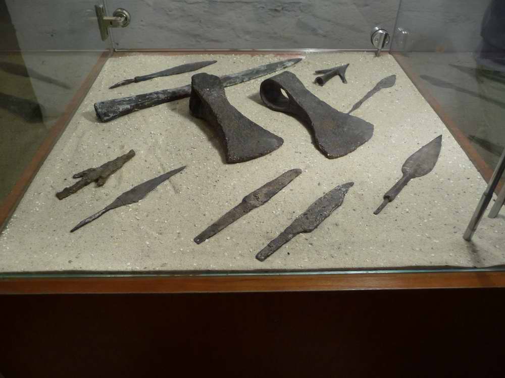 ...finden sich in einem zugänglichen Bunker, neben Fotostrecken, auch eine kleine Vitrine mit alten Jagd- und Gebrauchswaffen, wie Äxte, Messer, Speer- und Harpunenspitzen.