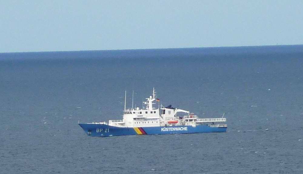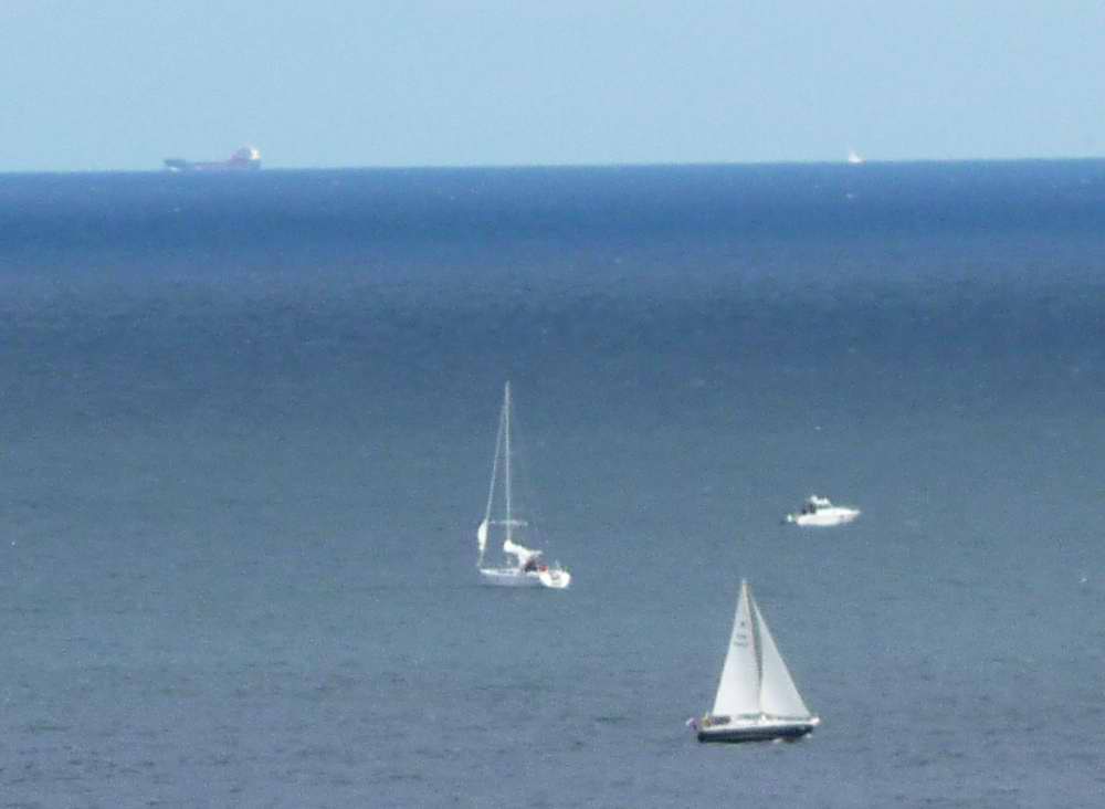 Der Blick über's Meer ist empfehlenswert, die unten einzeln abgebildeten Schiffe und Boote sind real viele Kilometer vom Land entfernt.