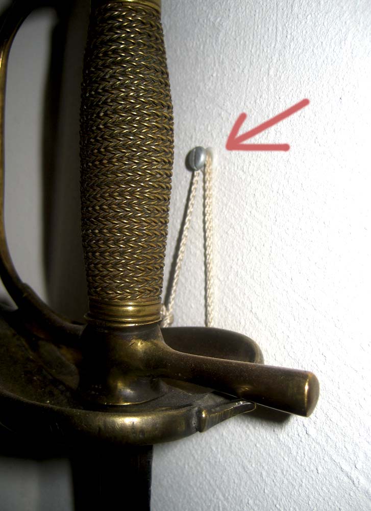 Ich bevorzuge Befestigungen, die nicht so ins Auge fallen (der Säbel soll ja wirken, nicht der Haken, an dem er hängt):