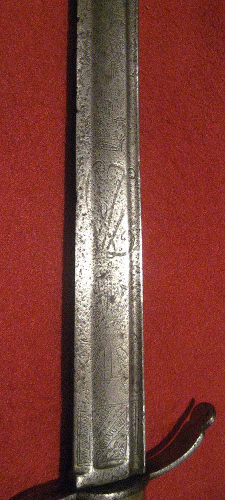 Dieses Seitengewehr wurde aus der gekürzten Klinge eines Dragonerdegens aus der Regierungszeit des Hessen-Kasseler Landgrafen Wilhelm IX. (regierender Landgraf 1785-1803, danach: Wilhelm I., Kurfürst) und einem neu gefertigten Gefäß hergestellt. Wahrscheinlich nach der vorübergehenden Auflösung der kurhessischen Armee 1806.