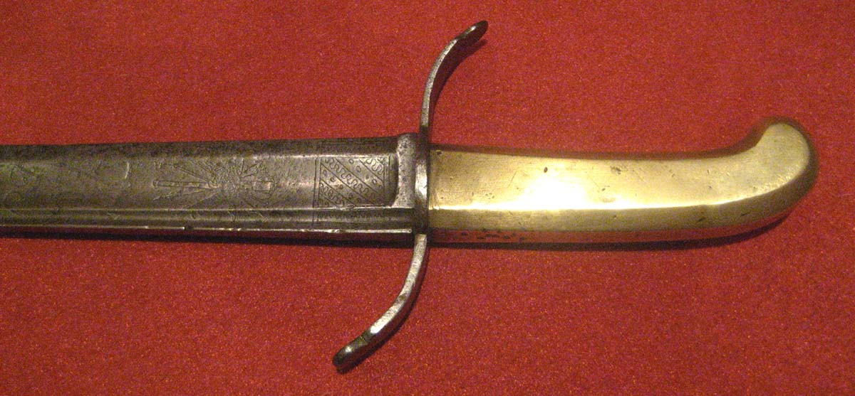 Dieses Seitengewehr wurde aus der gekürzten Klinge eines Dragonerdegens aus der Regierungszeit des Hessen-Kasseler Landgrafen Wilhelm IX. (regierender Landgraf 1785-1803, danach: Wilhelm I., Kurfürst) und einem neu gefertigten Gefäß hergestellt. Wahrscheinlich nach der vorübergehenden Auflösung der kurhessischen Armee 1806.