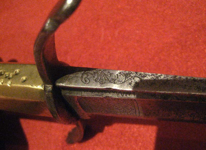 Die Klinge zeigt das Herrschersignet "WL" unter Landgrafenkrone für "Wilhelm, Landgraf".