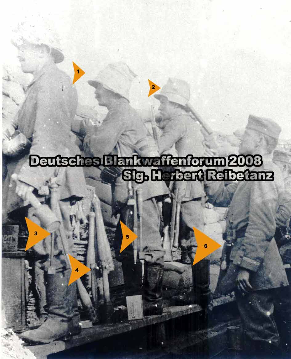 Die Grabenkeuel auf folgendem Bild ist so weit ich weis eine Deutsche. ABER, ich habe 2 andere Meinungen im Netz gefunden (ja, da findet man somanches....). Die eine sagte aus es handle sich um ein Österreichisches Modell und die zweite das es ein Italienisches sei. Leider gehört zu diesen abweichenden Meinungen auch die des Händlers bei dem ich diese erworben habe.