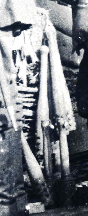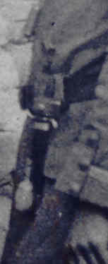 Am Koppel des Vize-Feldwebels mit der Leuchtpistole ein dolchartiges (6) Messer mit einem Rehfuß (?) als Griff.
