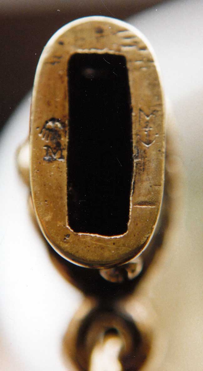 "M über Anker" und "Adler über M". Auf dem Mundblech werden beide Stempelformen nebeneinander verwendet.