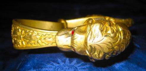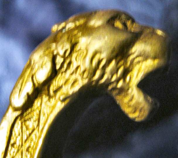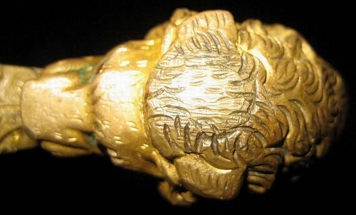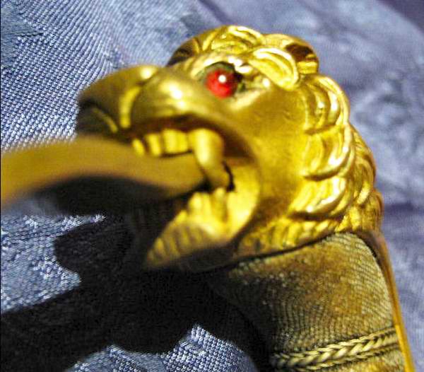 Gefäß deutlich größer als beim zuerst gezeigten, Steckrückenklinge mit Schör, Löwenkopf mit roten Augen.