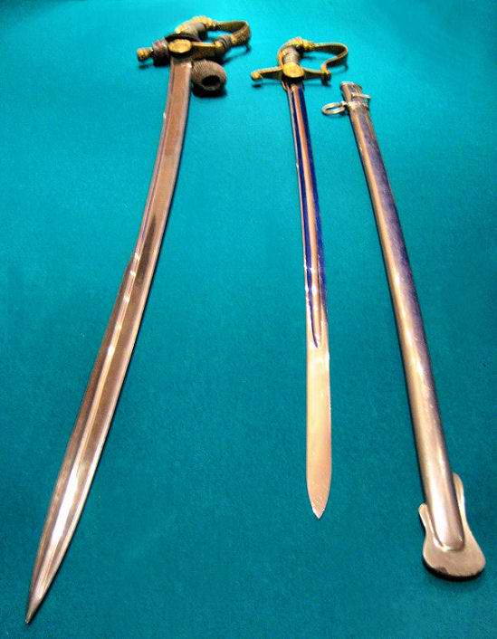 Bei den ersten beiden Fotos sind dieser und der zuerst gezeigte Säbel (Foto 1: oben; Foto 2: rechts) zum Größenvergleich abgebildet.