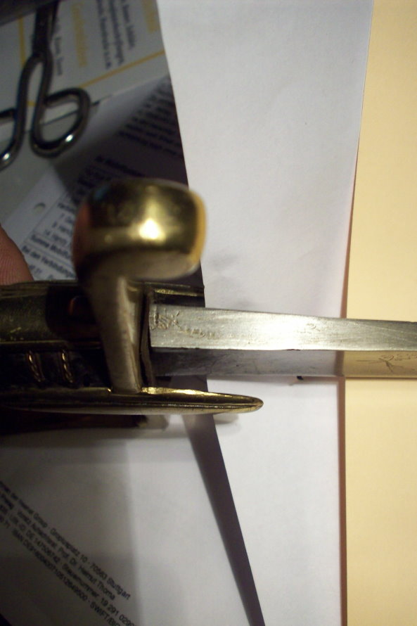 Hallo ioddegen, wie ich schon schrieb, sieht für mich die Chiffre sowie das rückseitige "Zeichen" völlig anders in der Gestaltung aus, als der restliche Zierrat der Klinge. Zum IOS 1816 mit der Steckrückenklinge mit Schör, stellt sich für mich die Frage,ab wann wurde ein solches Wappen mit Baldachin auf der Klinge verwendet? Wann wurde dieser Säbel abgelöst? Wer kann helfen? mit freundlichen Grüßen Dieter