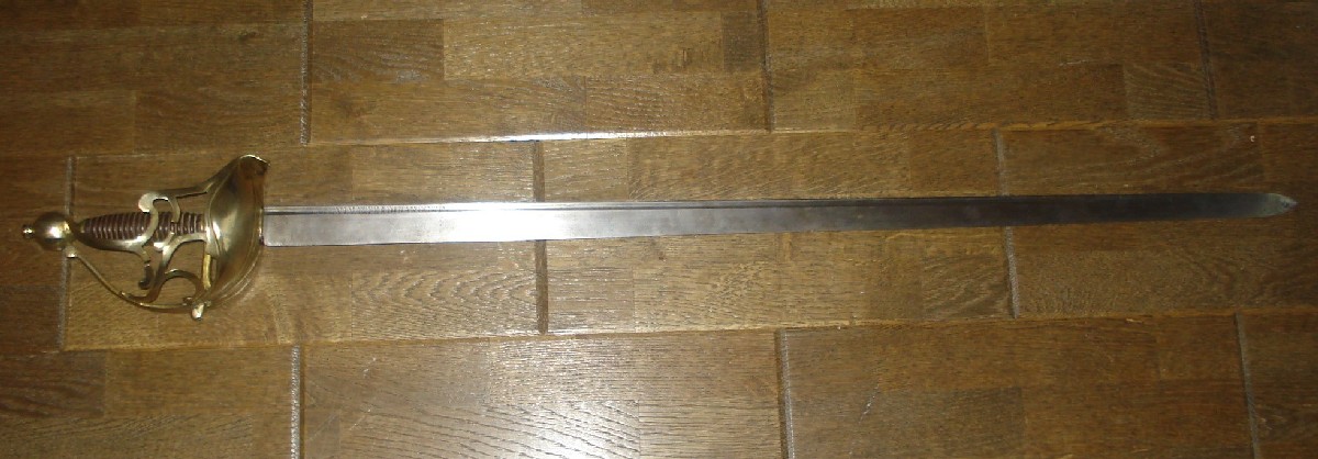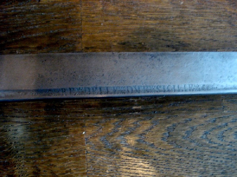 habe ein pallach gekauft. Gestamlänge 110 cm, klingenlänge 90 cm. Das griff sind aus holz und parierkorb aus messing. An klinge sind ein text ”viva Ferdinando IV” an andere seite stand text mit ”Sicilia”