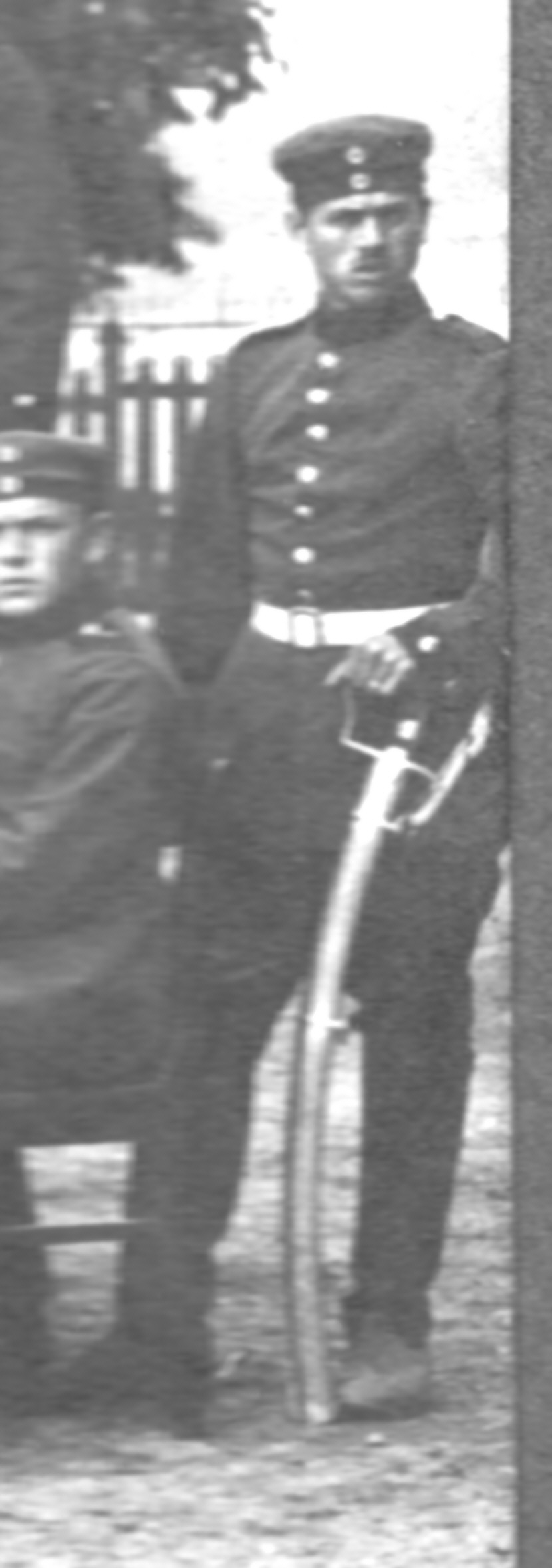 Und hier ein Foto aus dem Weltkrieg das einen Soldaten mit einem Blüchersäbel zeigt dessen unteres Scheidenband mit Ring entfernt wurde.