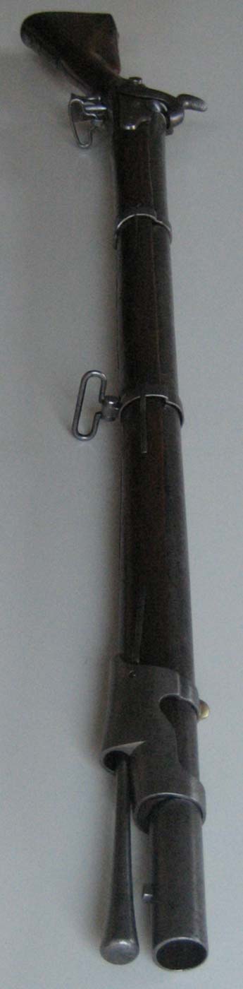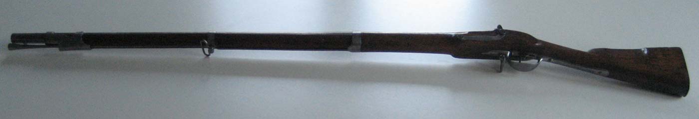 Gefertigt wurde es in Frankreich, wo zur napoleonischen Zeit, als durch die vielfältigen Kriege ein enormer Bedarf an Waffen bestand, alles, was man bekommen konnte oder in den Arsenalen hatte, zu Ordonnanzwaffen zusammengebaut wurde. Daher erklärt sich der Umbau des Laufes von Stift- auf Ringbefestigung.