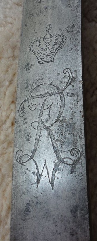 Eine weitere Waffe ist mir bekannt mit so einem Chiffre (ohne Schlaufen an den "Spitzen des W") auf einer Klinge von "Schimmelbusch und Sohn".