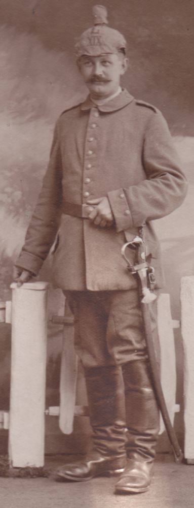der Helmüberzug weist auf die Munitionskolonne einer Landwehrformation des XIX. A.K. hin.