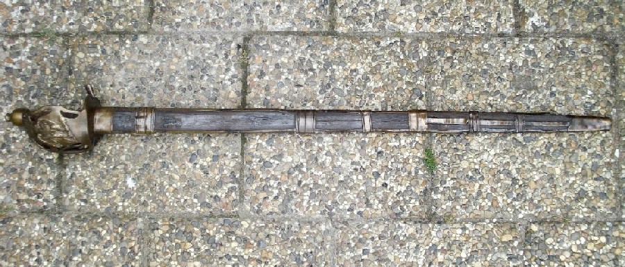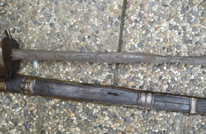 Scabbard in wood/brass/leather is in a poor condition, but I assume that scabbards of this kind is rather rare. The blade is very badly corroded. What would the age be? I think it could be 1760-1780.