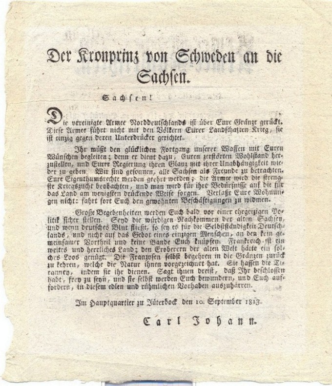 an die Sachsen => Armee - Nachrichten aus dem Hauptquartier, Töplitz vom 22. September 1813