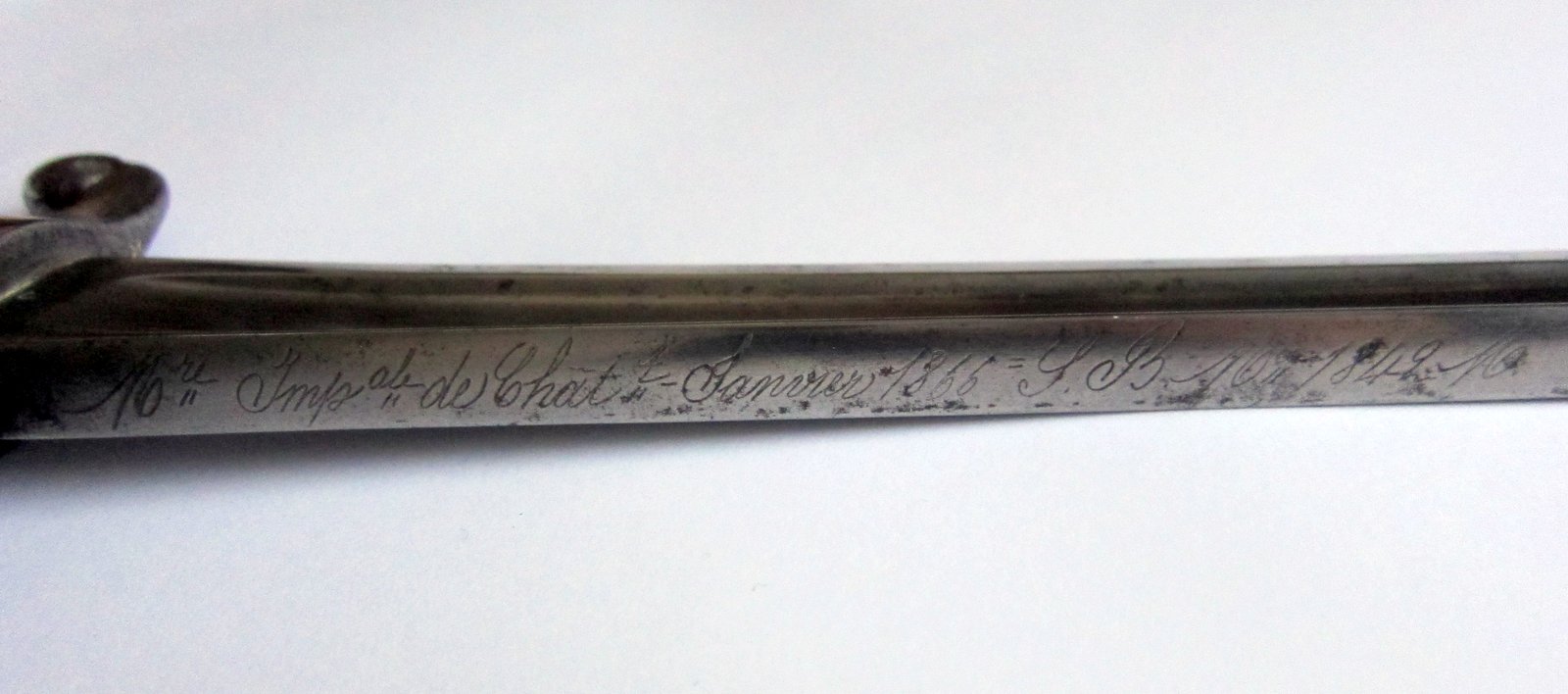 Auf dem Klingenrücken steht "Manufacture Imperiale de Chattelerault Janvier 1866,