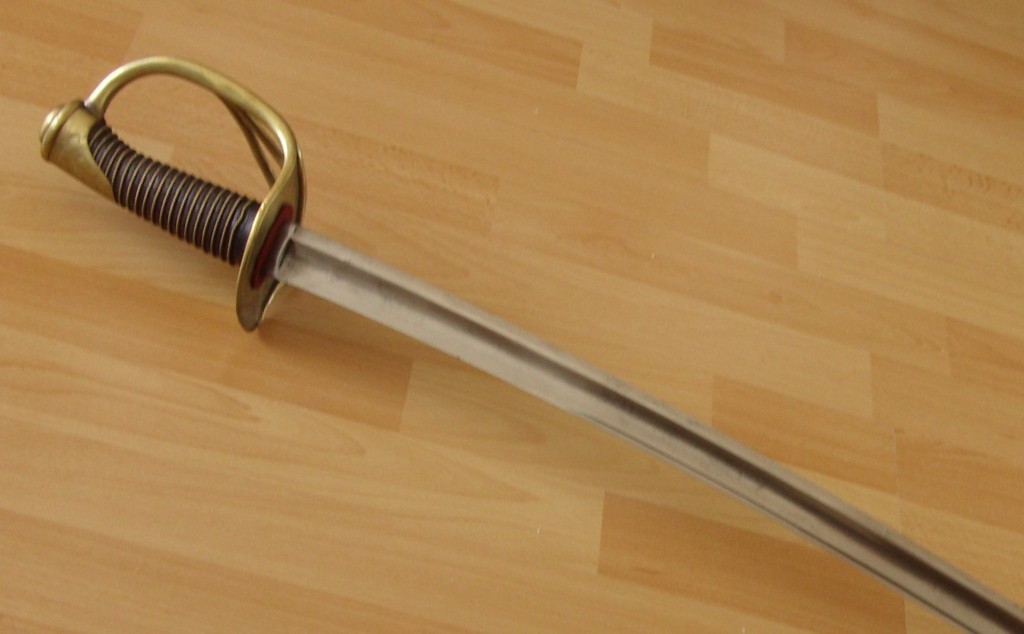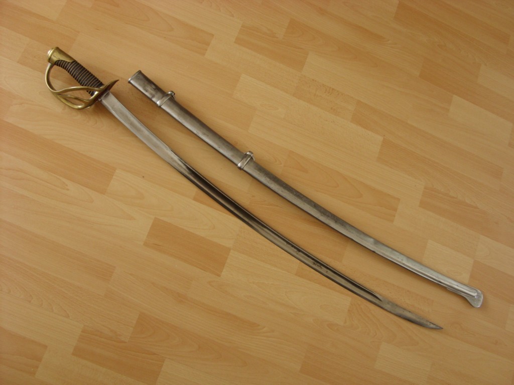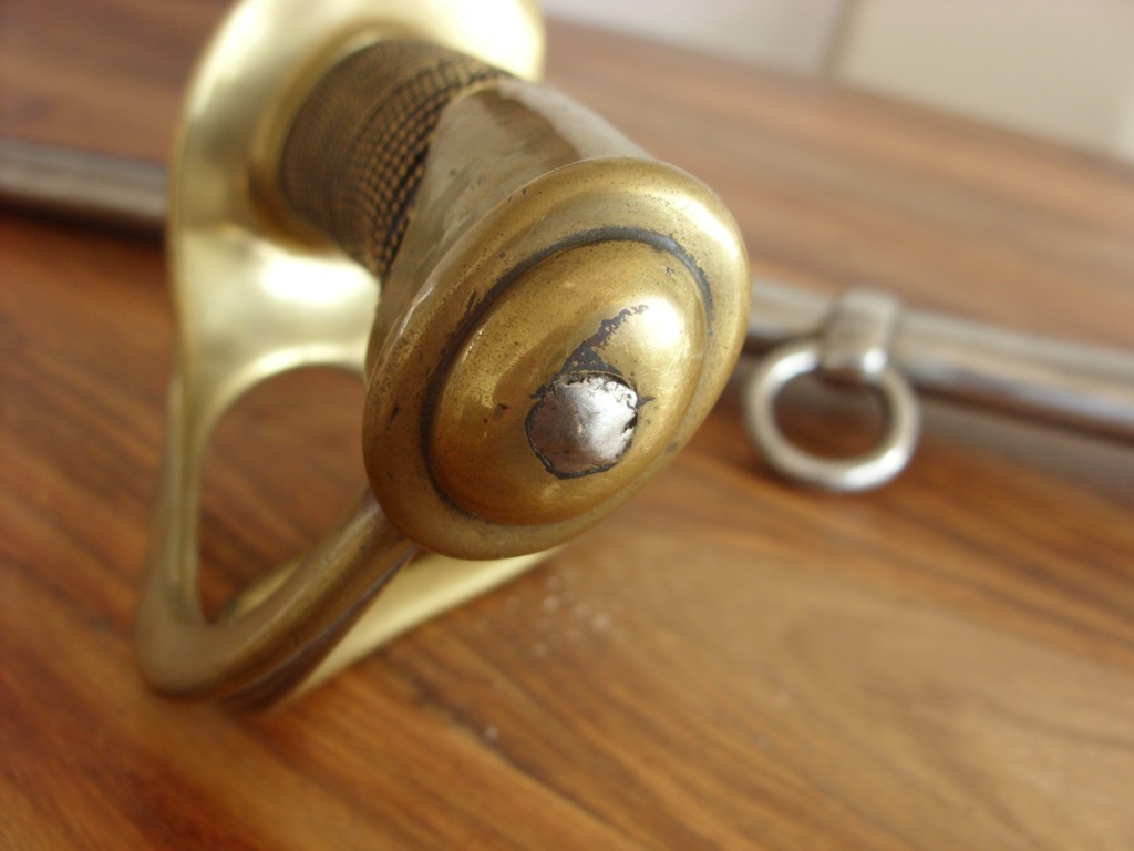 Die schwere Eisenscheide hat zwei Trageringe, hier sieht man noch Abnahme-
