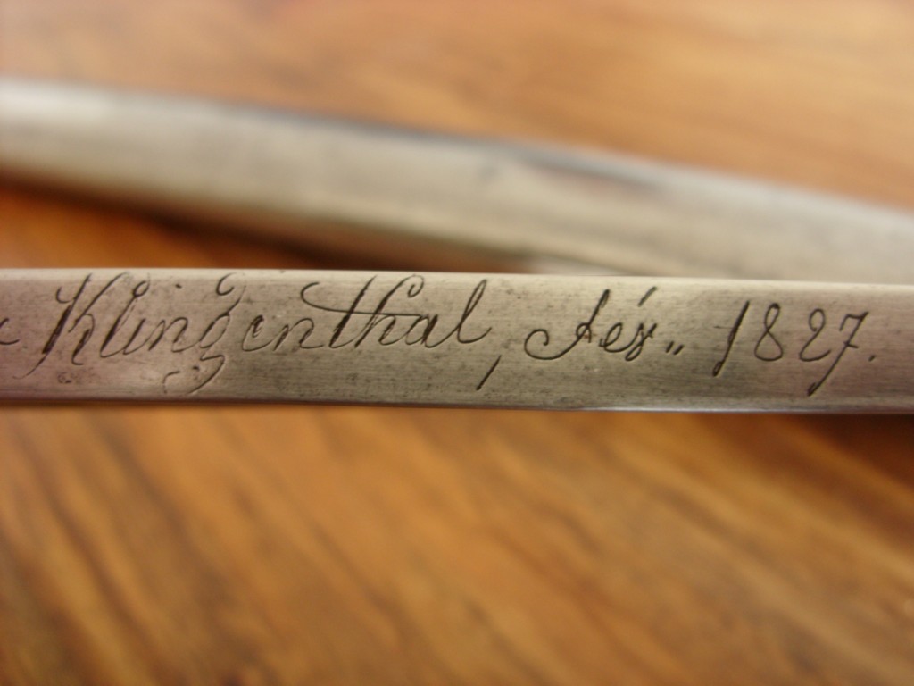 Die Klinge ist datiert vom Februar 1827, hergestellt in Klingenthal, sie