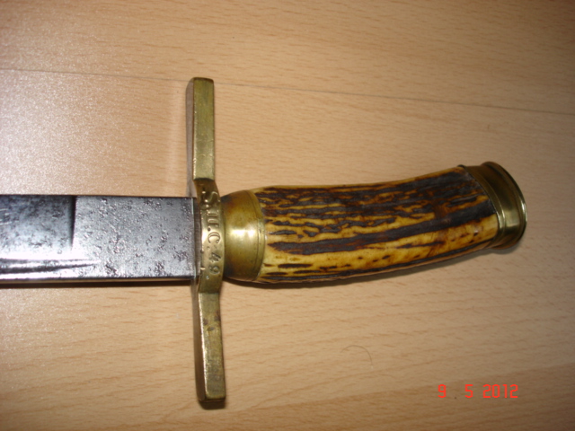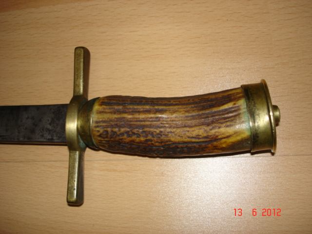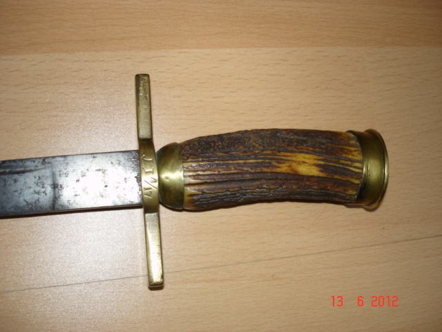 Hirschfänger alte Probe , mit Hirschhorngriff , M 1820 vom II.Schützen=Bataillon und vom I.Jäger=Bataillon